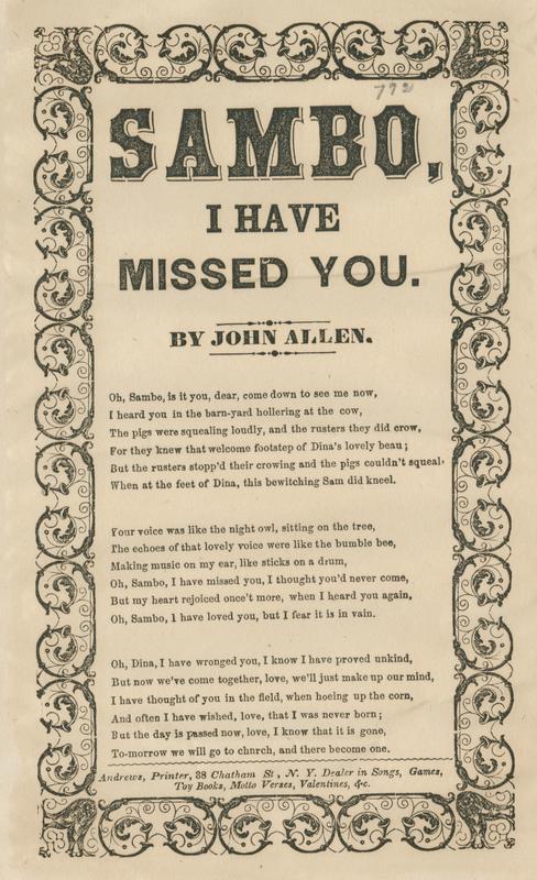 Oft, Sambo, is it you, dear, come down to see me now (3 vs.) By John Allen; print. Andrews. T. o. border. 23.3 x 14.5 cm.