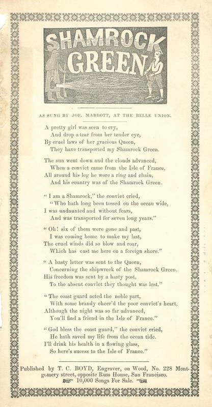 American Song Sheets, Slip Ballads and Poetical Broadsides Collection, 1850-1870.