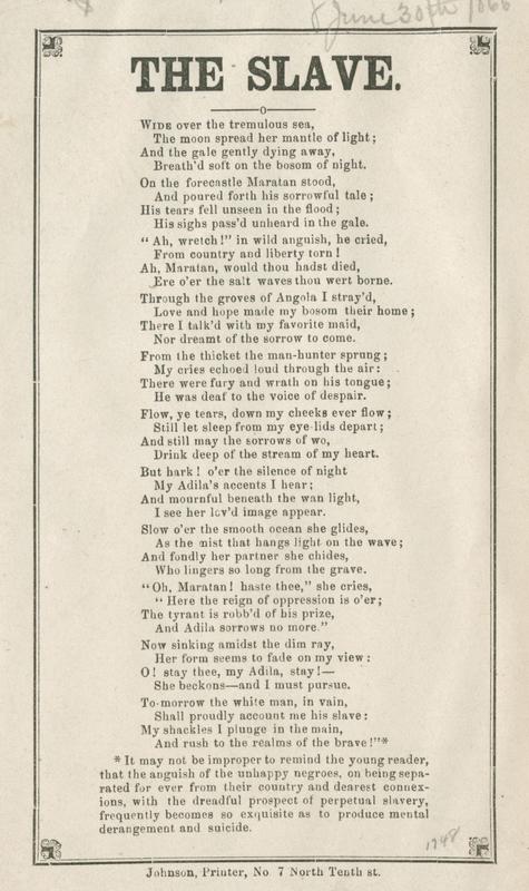 American Song Sheets, Slip Ballads and Poetical Broadsides Collection, 1850-1870.