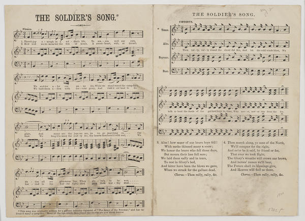 There's joy enough in a soldier's life (4 vs. and chor. with music to vs. 1 and 2 and chor.) Printed on double sheet. 19 x 13 cm.
