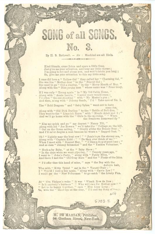 American Song Sheets, Slip Ballads and Poetical Broadsides Collection, 1850-1870.