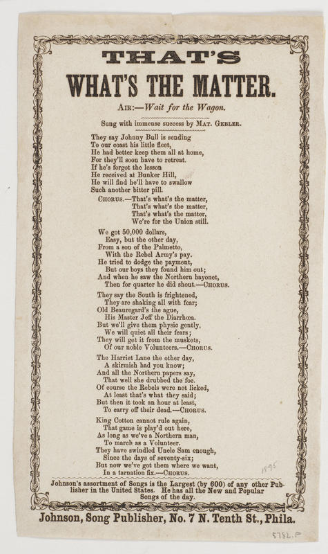 American Song Sheets, Slip Ballads and Poetical Broadsides Collection, 1850-1870. |