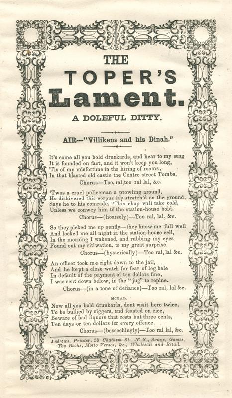It's come all you bold drunkards, and hear to my song (5 vs. and chor.) Air—"Villikens and his Dinah." Print. Andrews. T. o. border. 23.7 x 13.6 cm.