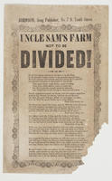 f. Title: "Uncle Sam's Farm not to be Divided!"; with 7 vs. and chor. slightly varying; [without "Tune";] publ. Johnson (2).