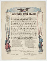 Zouave and Union soldier holding banners at sides, col. 29.1 x 22.2 cm.