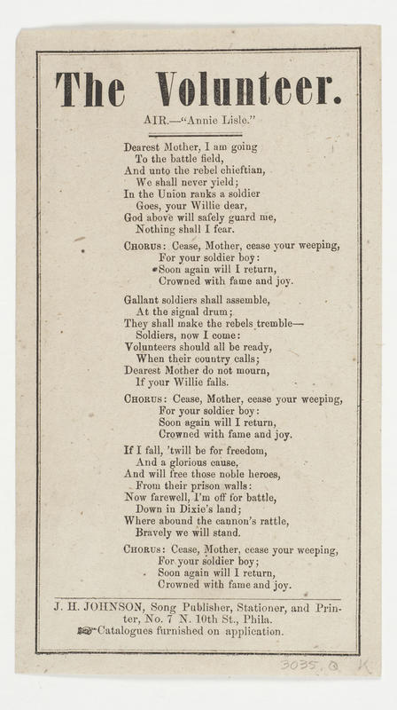 American Song Sheets, Slip Ballads and Poetical Broadsides Collection, 1850-1870.