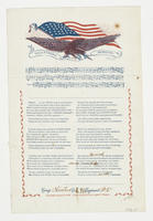Friend . . . of our Union, true to our Nation (6 vs. with 3 bars of music) Copyright secured in 1862; patent applied for by James P. Herron; [with spaces to be filled in by soldier.] Letter paper; blue ink; ribbon border around vs. in red; eagle with flag