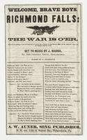 WELCOME, BRAVE BOYS. RICHMOND FALLS: THE WAR IS O'ER.