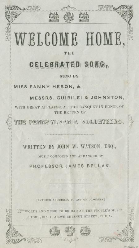 and Johnston, with great applause, at the banquet in honor of the return of The Pennsylvania Volunteers; written by John W.