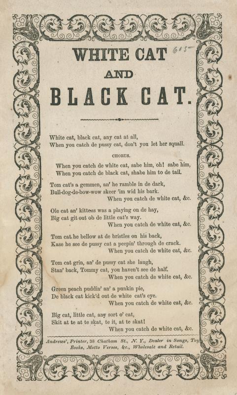 White cat, black cat, any cat at all (7 vs. and chor.) Print. Andrews. T. o. border. 23.5 x 14.5 cm.