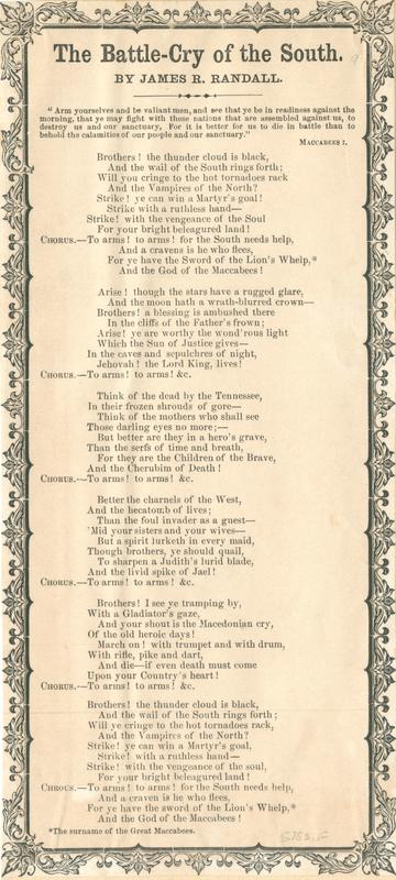 Confederate Song Sheets, Slip Ballads and Poetical Broadsides Collection, 1861-1865.