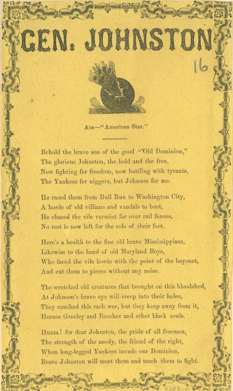 Confederate Song Sheets, Slip Ballads and Poetical Broadsides Collection, 1861-1865.