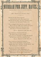 Hurrah for Jeff'. Davis, Hurrah (3 vs. and 2 chors.) Air—"Hurrah for the Bonnets o' Blue." By a Lady Rebel-written after the battle of Bull Run. T. o. border. 16.2 x 11.4 cm.