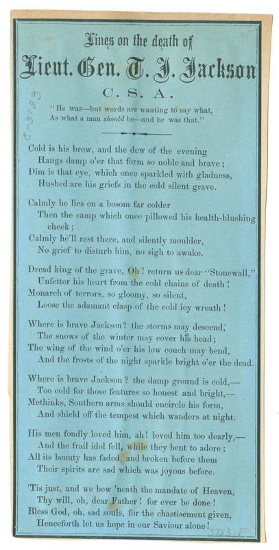 LINES ON THE DEATH OF LIEUT. GEN. T.J. JACKSON C.S.A.