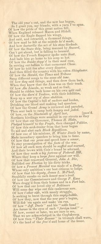 Confederate Song Sheets, Slip Ballads and Poetical Broadsides Collection, 1861-1865.