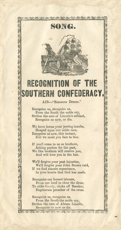 Confederate Song Sheets, Slip Ballads and Poetical Broadsides Collection, 1861-1865.