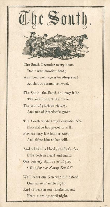 Confederate Song Sheets, Slip Ballads and Poetical Broadsides Collection, 1861-1865.