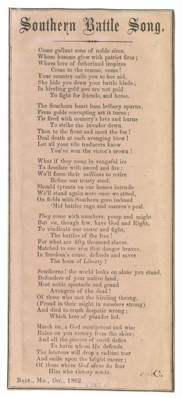 Confederate Song Sheets, Slip Ballads and Poetical Broadsides Collection, 1861-1865.