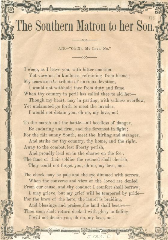 Confederate Song Sheets, Slip Ballads and Poetical Broadsides Collection, 1861-1865.