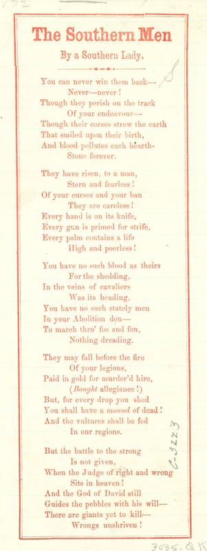 Confederate Song Sheets, Slip Ballads and Poetical Broadsides Collection, 1861-1865.