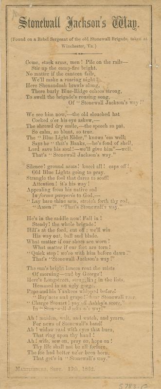 Confederate Song Sheets, Slip Ballads and Poetical Broadsides Collection, 1861-1865.