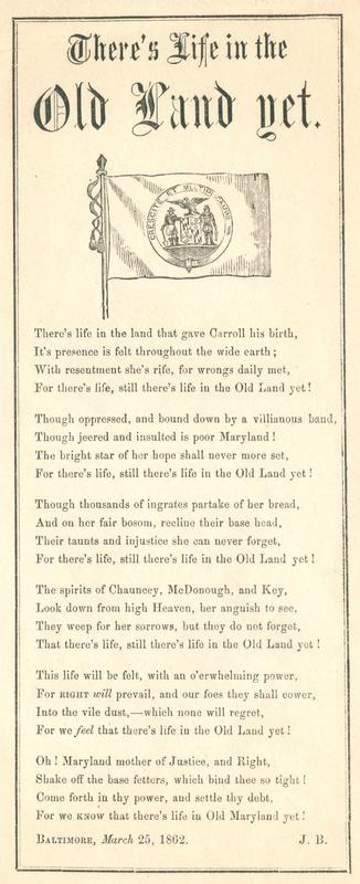 There's life in the land that gave Carroll his birth (6 vs.) [Signed] J[ohn] B[rady]; Baltimore, March 25, 1862.