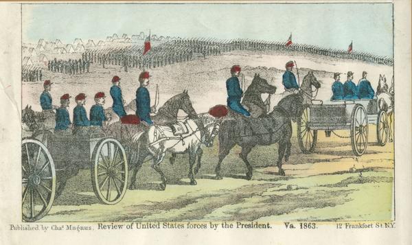 Review of United States forces by the President, Va. 1863. |