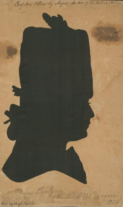 Note on top recto: Profile taken by Major Andre of the British Army; bottom: Major Stanly of the 17th Light dragoons 1778, cut by Major Andre. MS on verso: return'd to me after the Death of Mr. H. Pennington and I now give it to Foxhall A. Parker, U. S. Navy Eliza Lawrence, Aug. 22, 1862. The profile of Major Stanly of the 17th Regiment of Light Dragoons since Earl of Derby. Done by Major Andre while the British Army was in Philadelphia, and presented by him to Miss Rebecca Redman (afterwards Mrs. E. Lawrence).