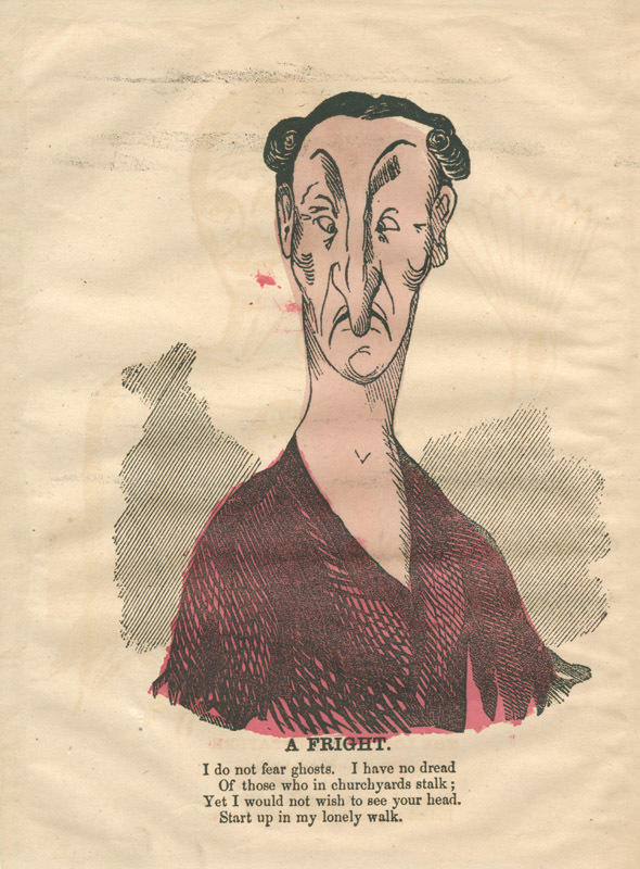 Text: I do not fear ghosts. I have no dread / Of those who in churchyards stalk; / Yet I would not wish to see your head. / Start up in my lonely walk.