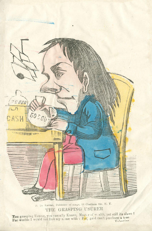 Text: You grasping Usurer, you rascally Knave, Master of Wealth, yet still its slave! / For worlds I would not link my name