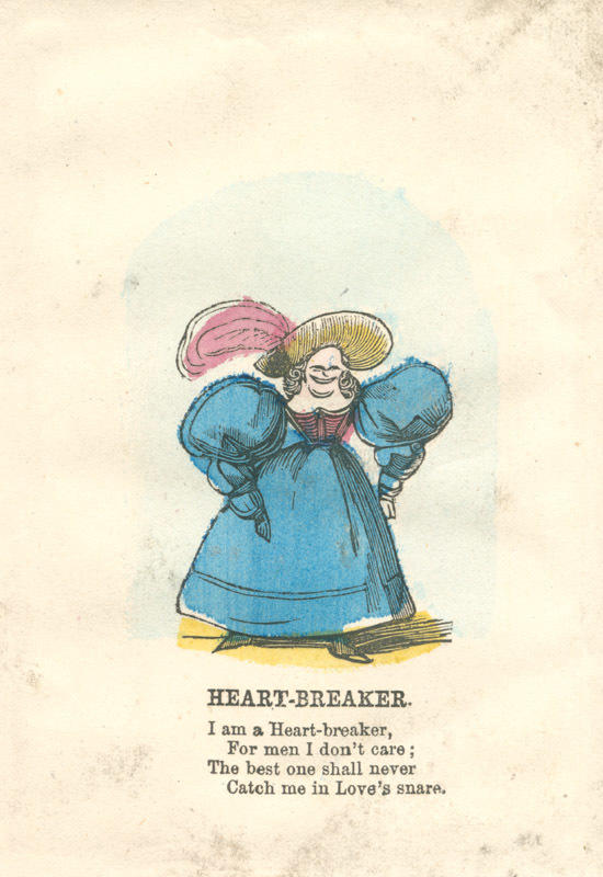 Text: I am a Heart-breaker, / For men I don't care; / The best one shall never / Catch me in Love's snare.