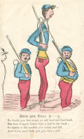 Text: No doubt you fare rough on salt beef and hard tack, / But that is much better than a ball in the back; / So march to the conflict o'er valley and hill, / And if you meet Jeff, just give him a pill.