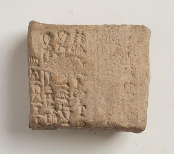 The tablet is from the archives at Lagash, excavated in the 1880s. It is made of unbaked clay and is a sealed envelope surrounding
