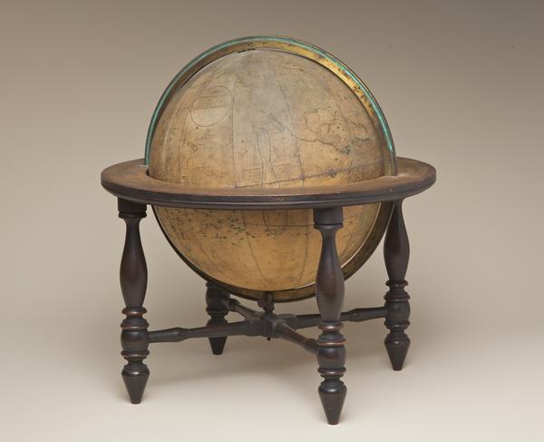 Pole. The globe rotates within a metallic meridan to which the axis is attached. The inscription on the globe reads: “Loring’s