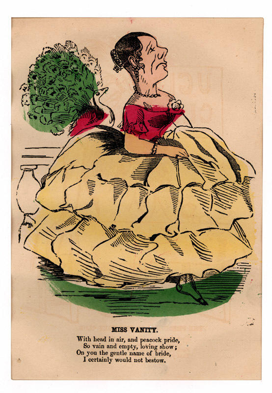 Text: With head in air, and peacock pride, / So vain and empty, loving show; / On you the gentle name of bride, / I certainly would not bestow.