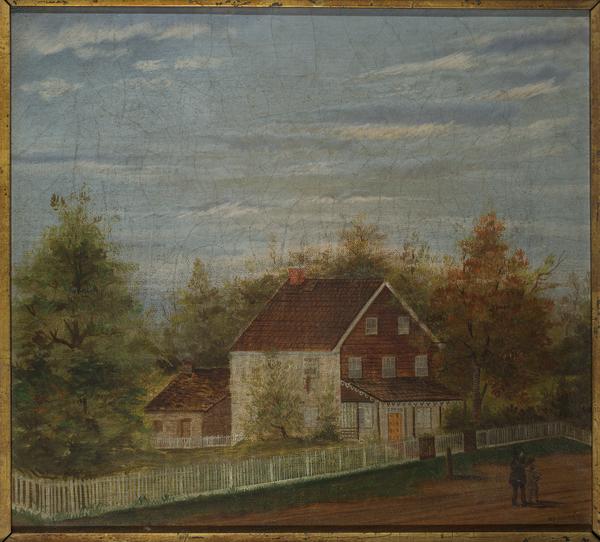 Signed on the lower right corner, "W.F. Vache 71." On the back is an inscription, "A. McCoy's House Village [Green?], W.F. Vache 1871."