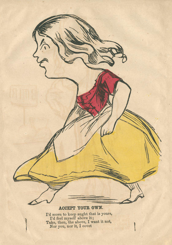 "Accept your own" depicts a woman walking purposefully. Her apron and simple dress suggest that she is likely a working woman. The verse implies sexual rejection.