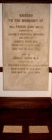 In his will, Dr. James Rush left the following instructions: "...I should be glad that the remains of the late Jacob Ridgway, of his daughter, my late wife, and of myself, should be removed to the new library building...and be placed in some spot within the outward limits of the building, under a plain and simple tablet.....I desire that my wife and myself may be placed in the new library building...The library will then be her monument, and I desire to lie by her side." Jacob Ridgway was not buried with the Rushes. The inscription on the tombstone reads as follows: "Sacred/To the Memories of/ Mrs. Phoebe Ann Rush./ Daughter of/Jacob & Rebecca Ridgway./ And wife of/ James Rush M.D./ Born Dec. 3, A.D. 1799/ Died Oct. 23, 1857./ And of/ James Rush M.D./ Third son of/ Dr. Benjamin & Julia (nee Stockton) Rush./ Born March 15, A.D. 1786./ Died May 26, A.D. 1869. The tombstone was moved to the Library Company's building at 1314 Locust Street in 1966.