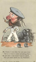 A man in a sailor's clothing stands by a pile of cannon balls and holds a sword. One meaning of "splice" is to marry, and the sender rejects the recipient. L. Prang & Co. first appeared in the Boston city directory in 1863.
