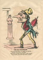 Text: Your buttonless shirt, and ragged coat sleeves, / Proclaim you to be an old Bach; / Pray hunt up some young maid, I