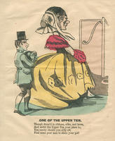 A woman walks in front a much smaller man, presumably her servant, who holds a bundle. "Upper Ten" is a term for the wealthy