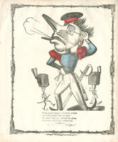 Text: Peace, proud puppy! would-be soldier / Can I e'er forget that we met? / Go, poor swab, go-- consult the glass, / And there you'll see a soldier ass.