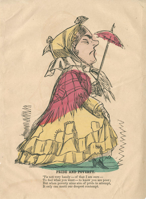 Text: 'Tis not very handy -- of that I am sure-- / To feel what you want -- to know you are poor; / But when poverty aims airs of pride to attempt, / It only can merit our deepest contempt.