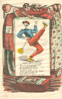 a kick in the rear instead of a medal. The border features a woman embracing a man; the pair resemble Commedia dell'arte