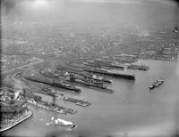 Aerial views of the terminus of the Pennsylvania and Reading Railroad at Port Richmond, Philadelphia. Railroad ends at the