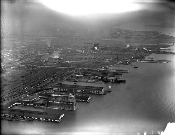 Aerial views of the terminus of the Pennsylvania and Reading Railroad at Port Richmond, Philadelphia. Railroad ends at the