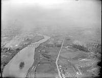 Aerial views of the Alan Wood Iron and Steel Company in Conshohocken, Pennsylvania. Views from higher and lower altitudes