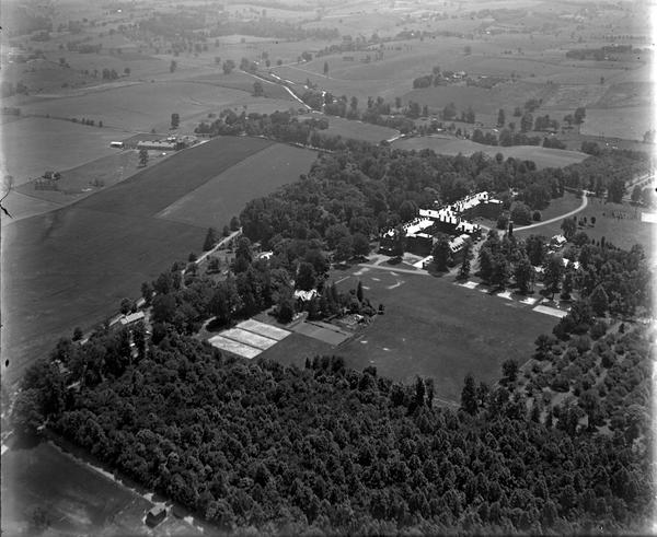 Aerial views of the campus and environs of the Westtown School, located in Westtown, Chester County, Pennsylvania. Views depict