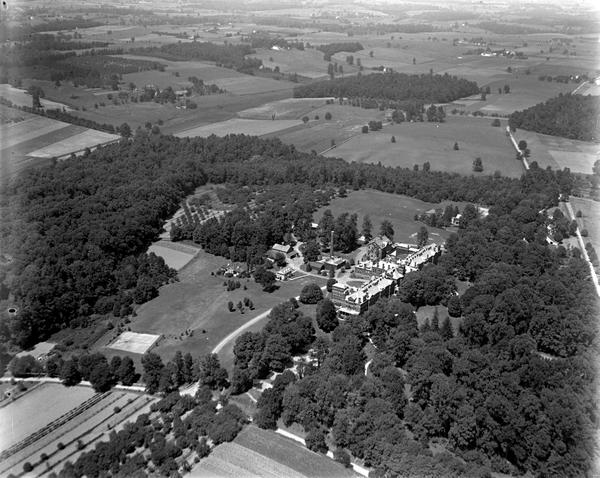 Aerial views of the campus and environs of the Westtown School, located in Westtown, Chester County, Pennsylvania. Views depict