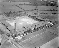 Aerial views of the Philadelphia Protectorate for Boys located near Audubon, Lower Providence Township, Pennsylvania. Depicts